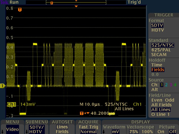 1벡터스코프는 컴포지트 비디오를 지원하지 않습니다.