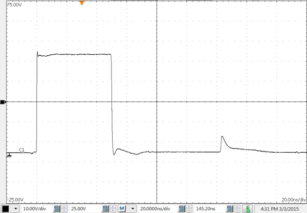 The following figures show typical pulses with various pulse waveform durations. The displays are set to 10 V/div and 20 ns/div.