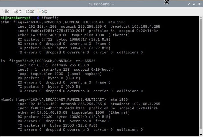 To look up the IP address in Raspberry Pi, use the command ifconfig.