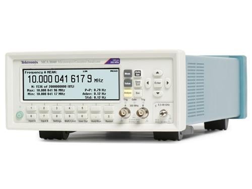 Offering up to 40 GHz measurements, the Tektronix MCA3000 Microwave Analyzer Series packs many different functions into one feature-rich instrument. The integrated power meter and two additional timer/counter channels offer you even more test functionality than other microwave analyzers on the market. With unprecedented resolution, you can capture very small frequency and time changes. And with the industry's most comprehensive analysis modes, including measurement statistics, histograms, and trend plots, you have the tools you need to quickly and accurately analyze your signal.