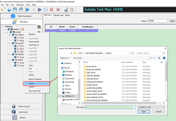 ACS Standard Edition software is also used on fully integrated and automated rack-based customized test systems for process control monitoring (PCM), wafer acceptance testing (WAT) and die sorting. Many of the tools and capabilities built into ACS Standard software enhance automated device characterization: