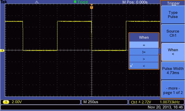 Применяя функцию запуска по длительности импульса, можно легко захватывать важные события.