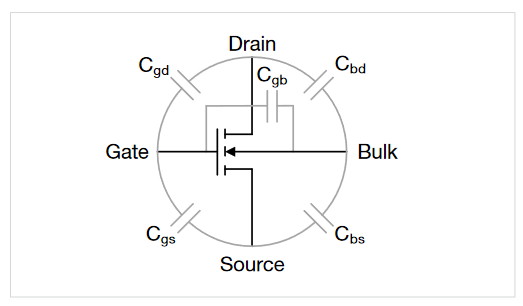 Figure 13. Parasitic capacitances of a MOSFET.