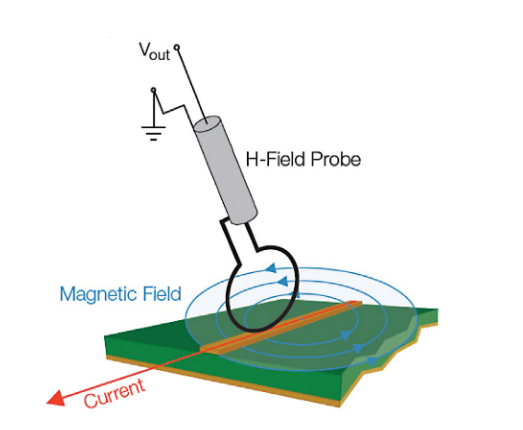 FIGURE 7. Position an H-field probe in line with current flow so magnetic field lines pass through the loop.