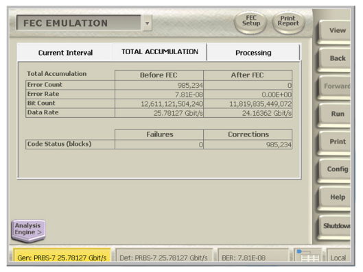 - FEC Emulation: provides both the raw BER and the FECcorrected BER for any FEC scheme you might want to test or audition including schemes that use interleaving and data striping.