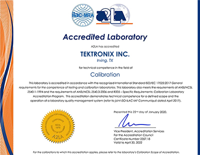 Tektronix ISO/IEC 17025 Accredited Calibration Services