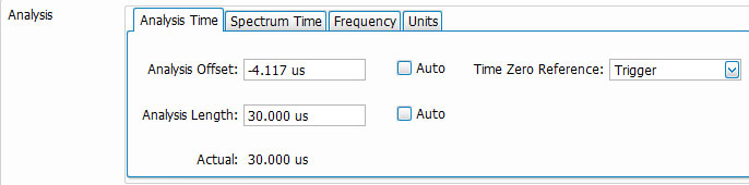 The Analysis Offset and Length can also be setup in the Setup > Analysis panel (although it is less visually intuitive).