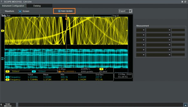 只要按幾下滑鼠就能將示波器的螢幕截圖儲存到您的電腦。在軟體中啟用自動更新時,示波器的螢幕截圖就可以每秒更新一次。2這可讓您遠端監控儀器。更新的螢幕截圖也可以投射在實驗室中以協助講師。