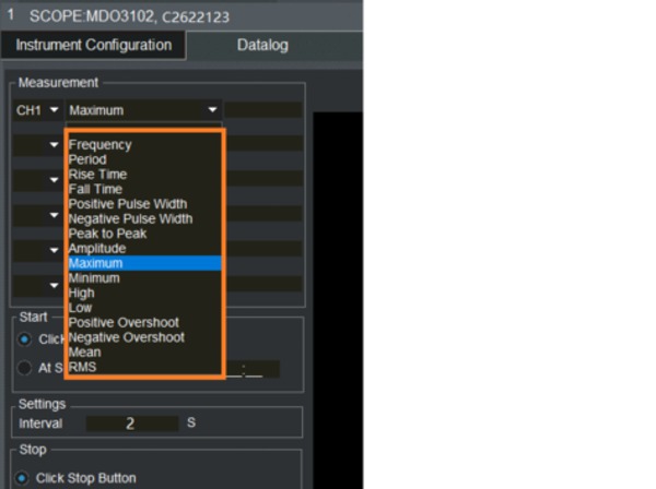 TekBench™ 可讓您選取 16 個最常用的量測。資料記錄最多可供六個量測同時執行。每個量測結果的間隔可設定為最低 2 秒,而測試時間最多 5 天。1