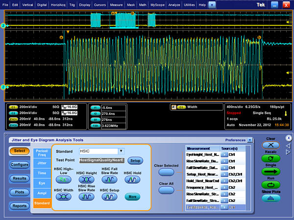 DPOJET software with HSIC Essentials Setup Library provides a full set of measurements required for HSIC Device and HOST testing. The HSIC Essentials enable Debug Analysis and Characterization to the HSIC specification.