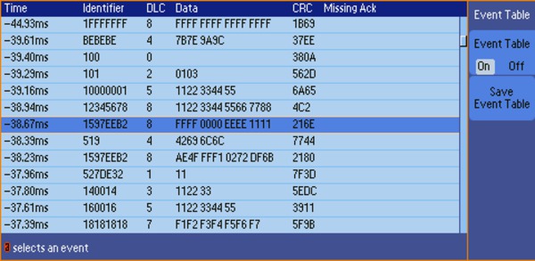 針對 I2C、SPI、CAN、LIN、 RS-232/422/485/UART 等常用串列介面上的封包內容而觸發,例如封包起始、特定位址、特定資料內容、唯一識別碼等。