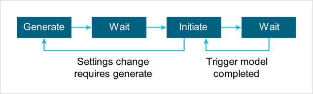 This trigger model cannot be interrupted while running. An app restart is necessary if the trigger is not set up correctly at this stage. To avoid disruption in your test flow, ensure that your trigger event is set up correctly prior to starting the output. When the trigger model has been executed, the app will return to the initiate stage shown in Figure 13.