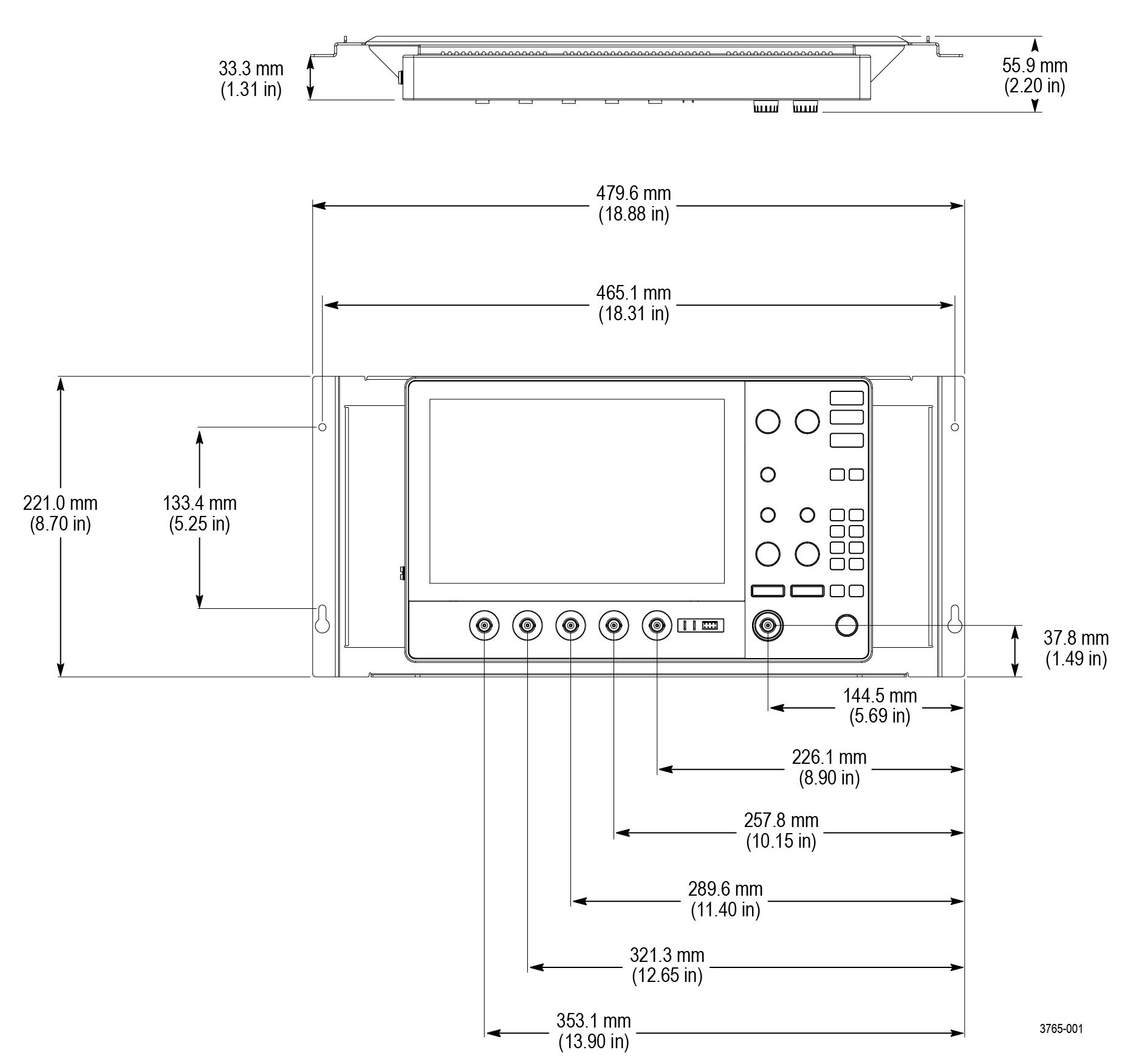 - A minimum inside depth of at least 14 mm (0.55 in) depth (from rack mounting ear to back of instrument).