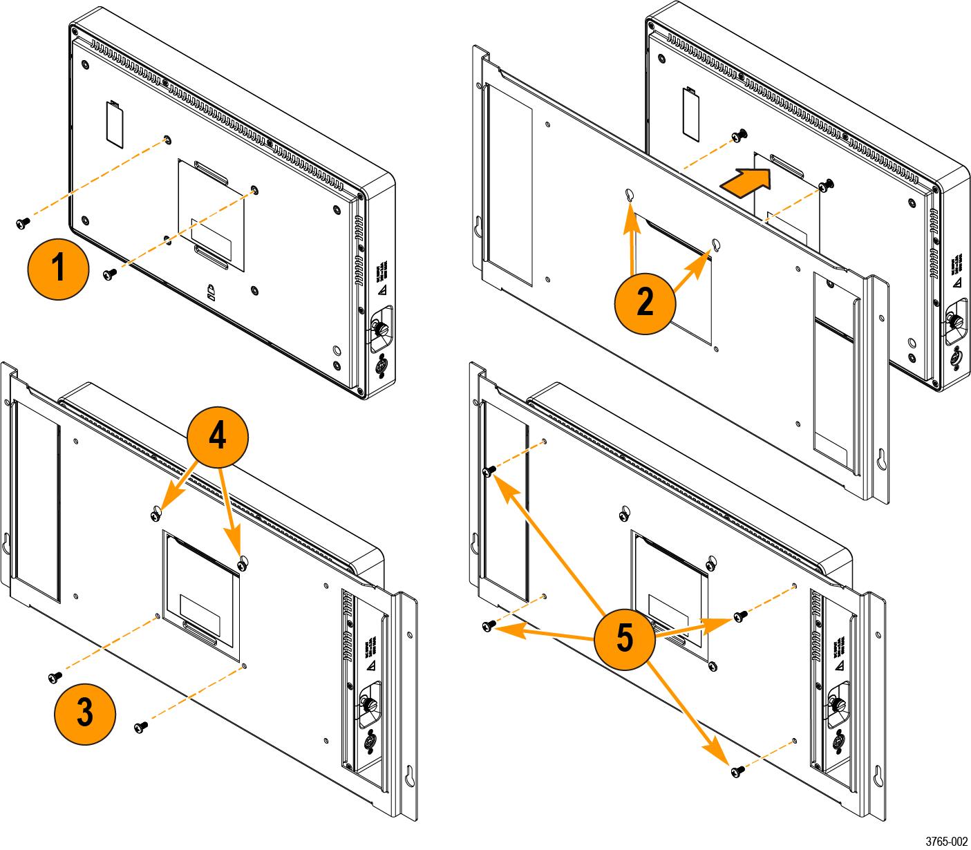 Install the 2-RK rackmount onto the back of your 2 Series MSO instrument using the following instructions.