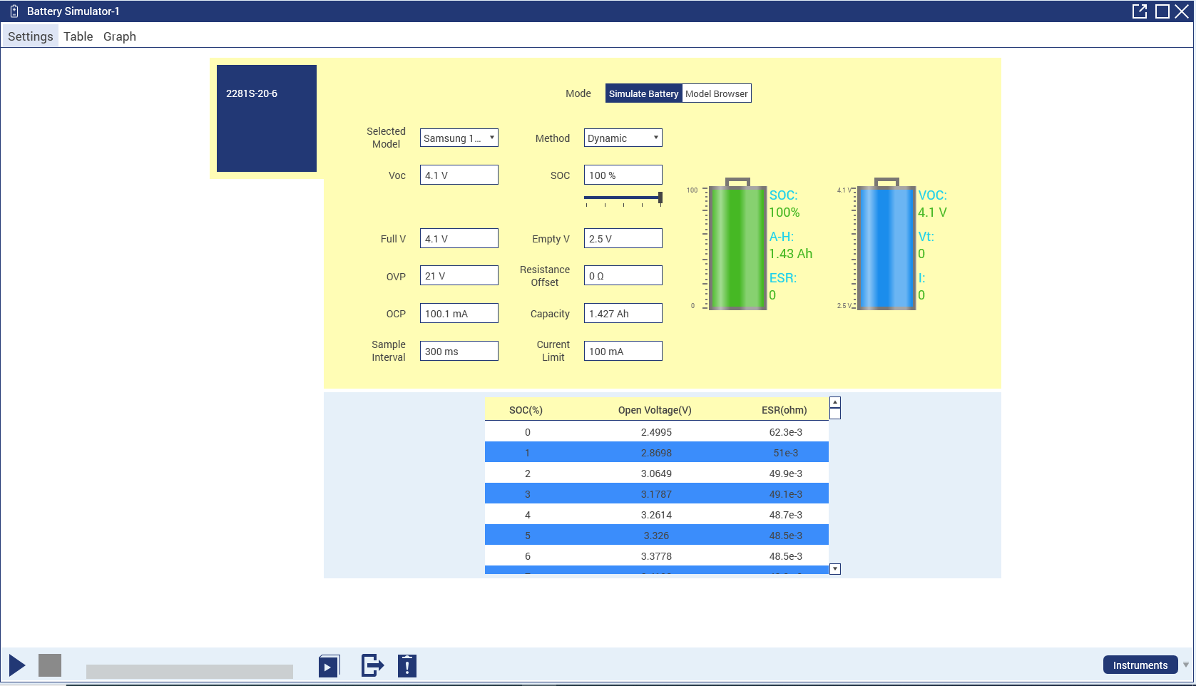 SMU 儀器 | 2400 系列、2600 系列 | 電池模擬器應用程式 |