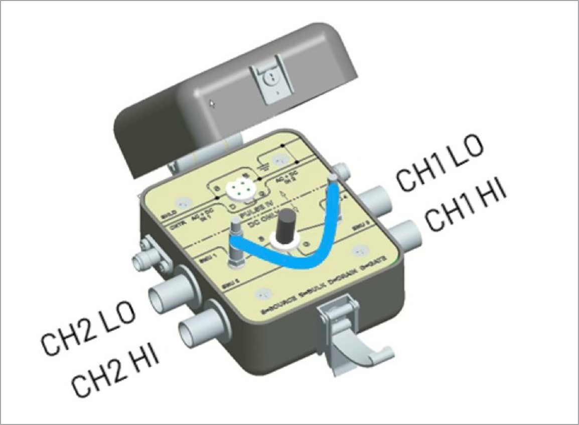 To generate a MOSFET family of curves using TSP Toolkit, all that is required is a single 2 channel SMU module installed in slot 1 of an MP5103 mainframe. A MOSFET is then connected to the SMU using a test fixture and triaxial cables as shown in Figure 5.
