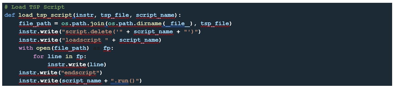 The first function loads a TSP script to the instrument’s memory:
