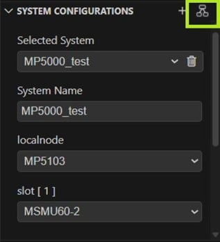 2. Connect to your MP5000 Series using the Instruments Pane, then click on the tree icon in the System Configurations Pane below to fetch the module information: