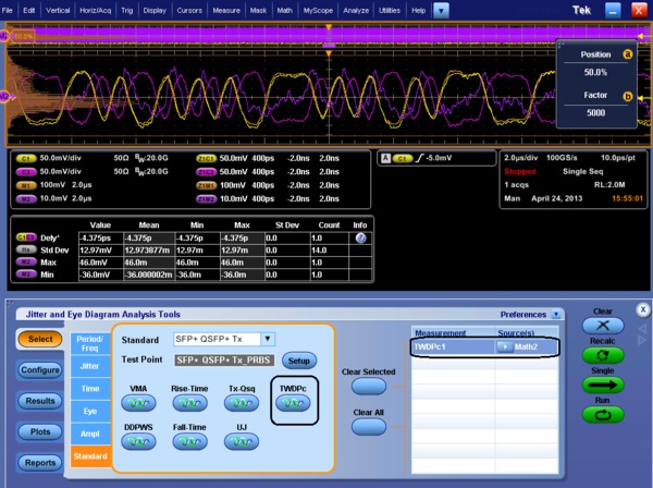 - TWDPc – Transmitter Waveform Distortion Penalty for Copper measurements are available to customers with Option SFP-WDP. SFF-8431 SFP+ TWDPc based Matlab code has been integrated into the SFP-WDP option to make sure engineers can use this measurement in the automated setup.