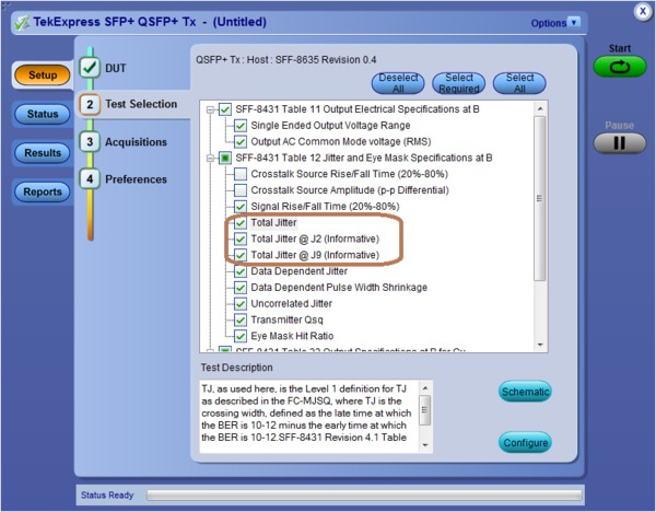 J2 and J9 (under QSFP+ dropdown menu) measurements have been added as informative measurements to SFP-TX, these measurements are part of other 10G standards like 40GBASE-CR4 and XLPPI.
