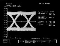 The measurement displays the teletext eye height pattern along with numbers for both eye height and eye width. A soft key selection can add a histogram display of all amplitudes or the amplitudes at any point at the clock. This is a useful statistical tool for seeing noise and jitter in the teletext signal. A grading display of eye height is also provided at the touch of a soft key. This provides visual feedback on density levels for "ones" and "zeros." A timing display of the teletext signal provides data timing from leading edge of sync to last run-in bit and run-in bit width. Also at the touch of a soft key are horizontal or vertical cursors which are useful for manual measurements.