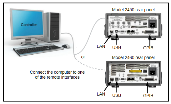 Figure 4. Model 2450 or Model 2460 SourceMeter SMU Instrument remote interface connections.