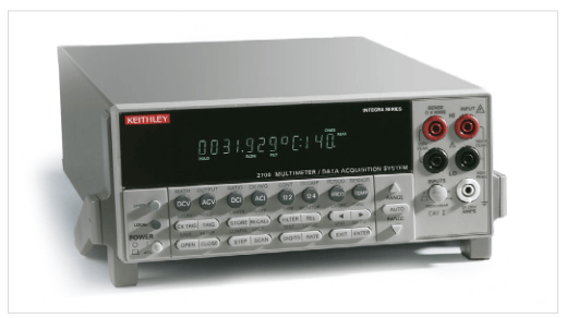 Data acquisition systems can be large or small, depending on the number of devices or sensors to be tested with one instrumentation setup. System costs will vary widely, depending on system requirements such as measurement accuracy, sensitivity, resolution, test speed, and the range of signal types that will be encountered. The USB unit shown here is an example of a low-cost option with marginal accuracy that can monitor a few items with one test setup. In contrast, the Keithley 3706A System Switch/Multimeter is a more sophisticated system that can test up to 576 devices with one test setup and measure with 7½-digit resolution and high accuracy.