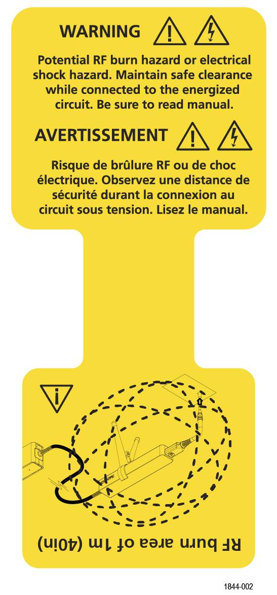 ![]() | WARNING:To avoid electric shock, keep the probe wire as far from the tip and high voltage circuits as possible. The probe wire voltage rating is less than the probe tip voltage rating. Therefore the probe wire may not provide adequate protection. |