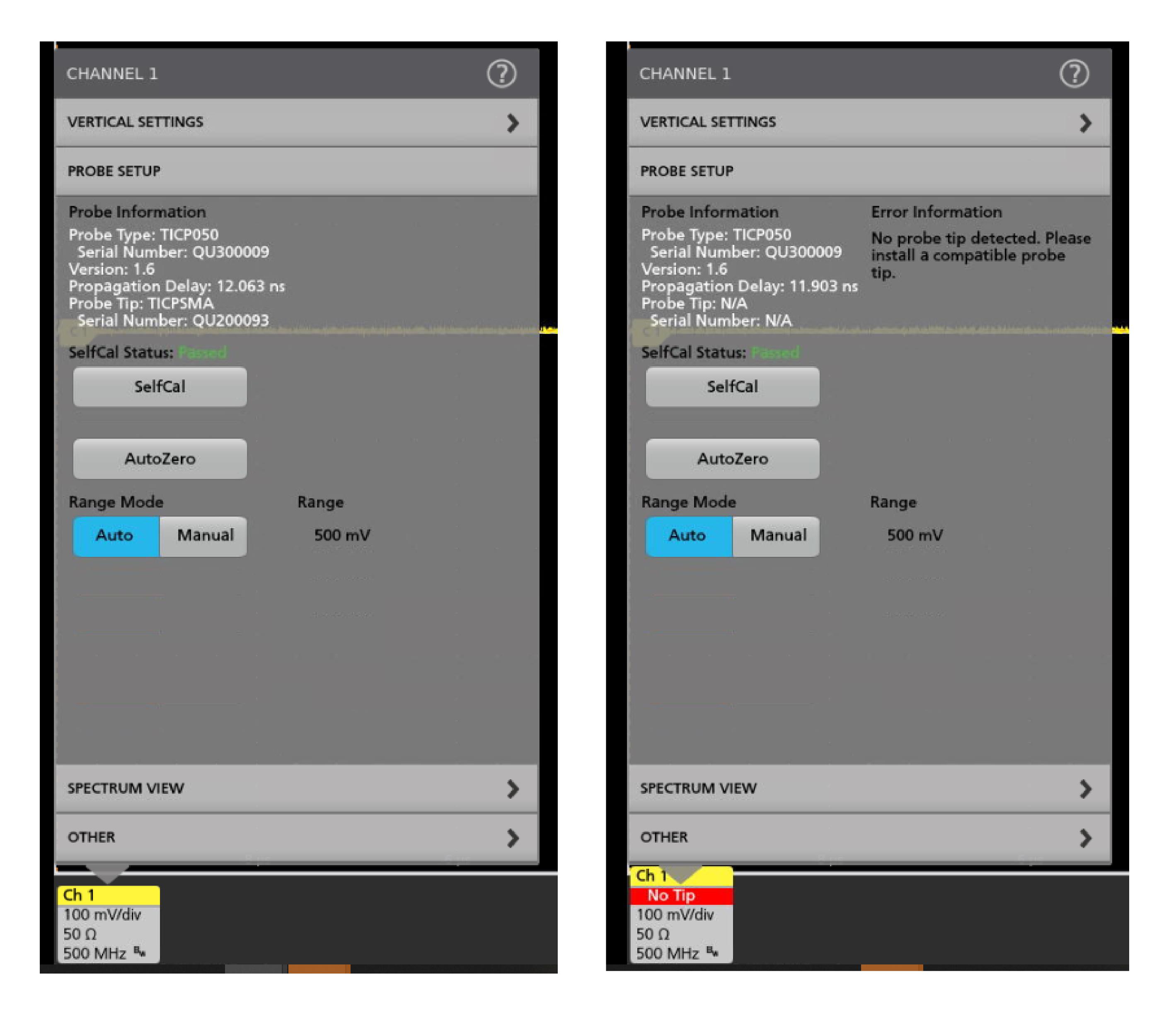 , indicating that the serial number of the probe attached to Channel 1 is B010289.