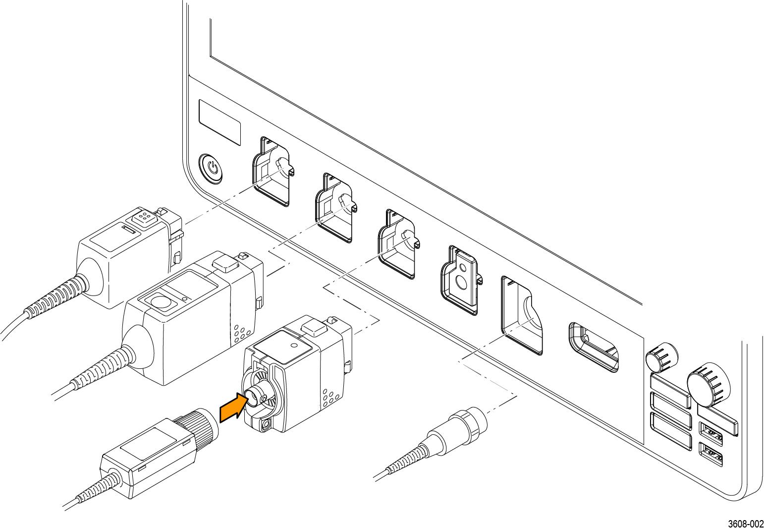 Before connecting probes or test leads, connect the power cord from the power connector to a properly grounded power outlet.