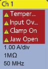 This instrument shows a warning triangle symbol and an error message abbreviation in a Channel badge when an error occurs.