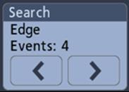 Search badges have < (Previous) and > (Next) Navigation buttons that open the Zoom mode and center the waveform in the display at the position of the previous or next search mark in the waveform record. Search badge Navigation buttons are only usable when acquisitions are stopped.