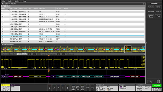 Includes serial bus decoding for protocols used in the aerospace industry, as well as support for generic encoding schemes such as NRZ and Manchester. Mask and limit testing make it easy to automate testing of unique signals.