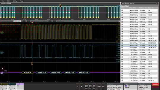 4, 5 or 6 Series MSOs equipped with a Starter Bundle (for example, 4-STARTER-PER) will be able to decode and trigger on I2 C, SPI, RS232/422/485/UART bus activity.