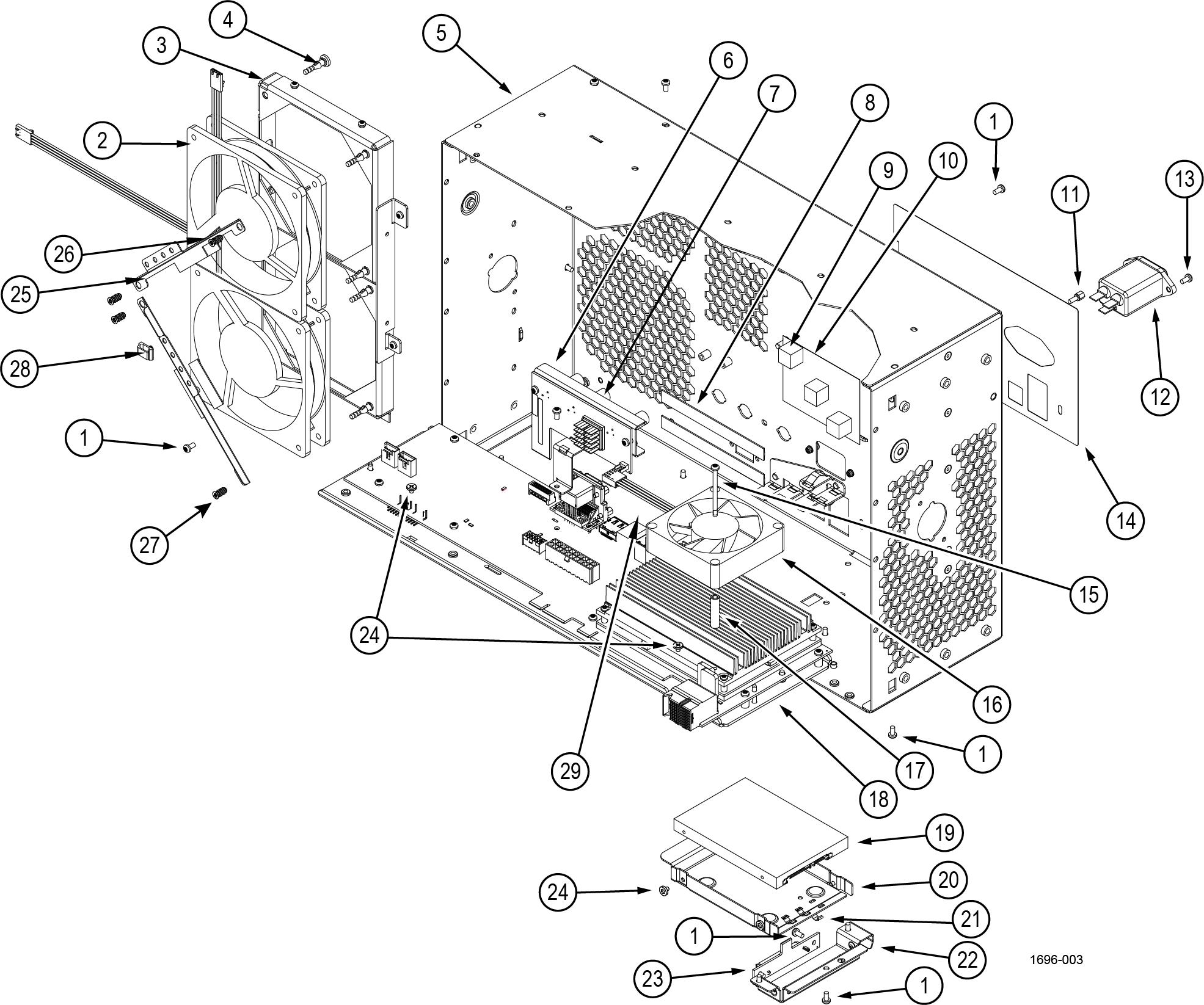 ![]() | Note:None of the components listed are user-replaceable. Return the instrument to your nearest Tektronix Service Center to repair or replace any internal components or assemblies in this diagram. |