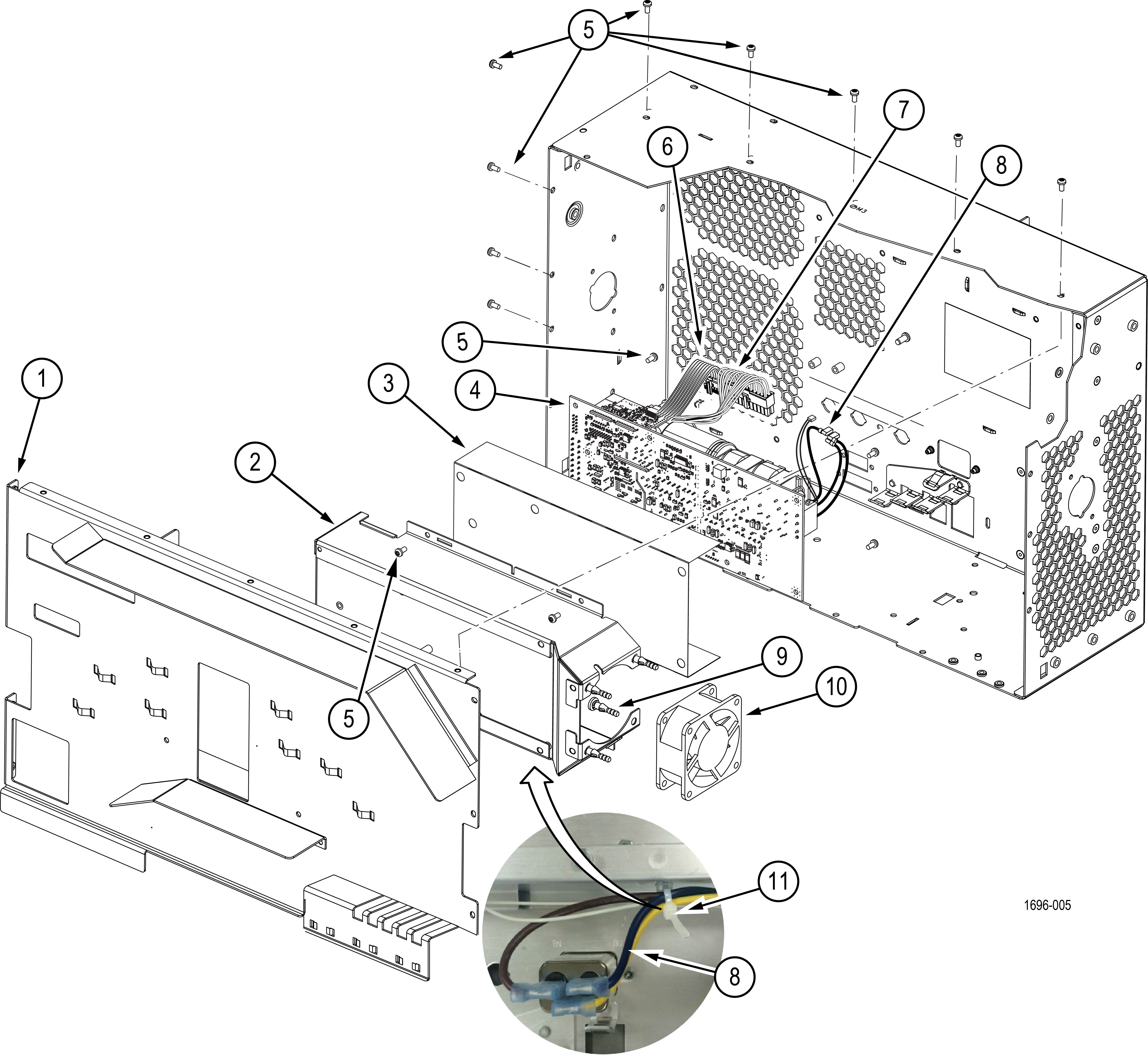 -5 | 174-7244-XX | 1 | CABLE, TOUCH SCREEN TO FRONT PANEL Return the instrument to Tektronix for service. | ||