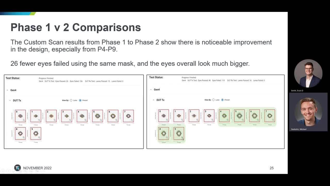Các giải pháp kiểm tra tự động PCIe của chúng tôi giảm đáng kể độ phức tạp của kiểm tra bằng cách xử lý việc thiết lập và hiệu chuẩn. Kết hợp với phần cứng đo độ nhiễu thấp, các giải pháp này cho phép đo lường tính toàn vẹn tín hiệu nhanh chóng, chính xác và có thể lặp lại. Với tư cách là thành viên biểu quyết tích cực của nhóm làm việc PCI-SIG®, chúng tôi có chuyên môn cần thiết để thẩm định bộ phát tín hiệu, bộ thu tín hiệu, đồng hồ tham chiếu và vòng khóa pha (PLL).